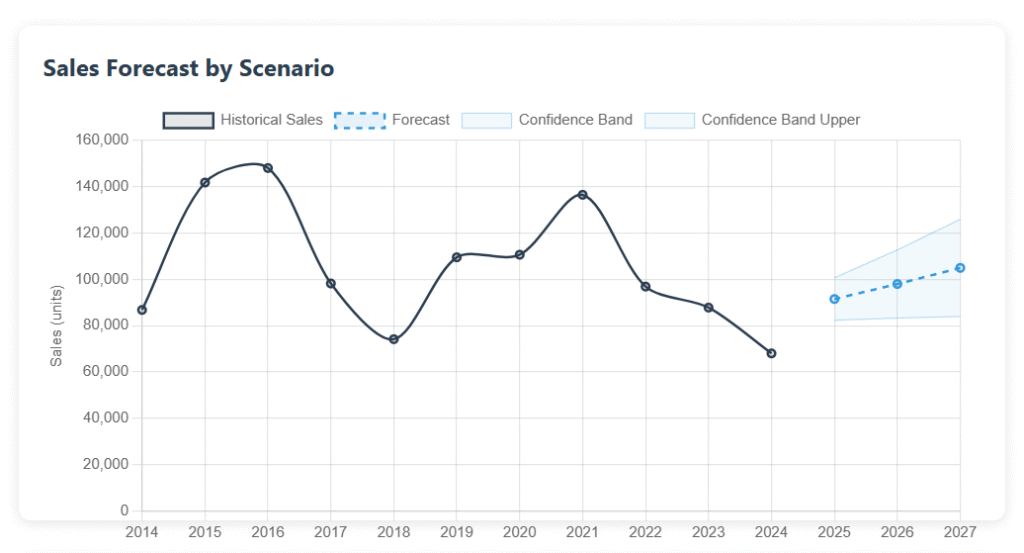 Export your sales data from 1C using our simple guidelines, upload it to our website, and you’ll get a detailed sales forecast sent to your email as an Excel file. You’ll also get access to an interactive online dashboard where you can explore different sales scenarios and view analytics for your most important product categories.